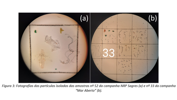 Entre janeiro e maio de 2020 foram recolhidas 123 amostras para determinação de microplásticos no Oceano Atlântico Norte e Sul a bordo do NRP Sagres. Aproveitando a missão “Mar Aberto”, que decorreu no arquipélago de Cabo Verde no NRP Gago Coutinho entre janeiro e fevereiro de 2021, foram colhidas 44 amostras para determinação de microplásticos.